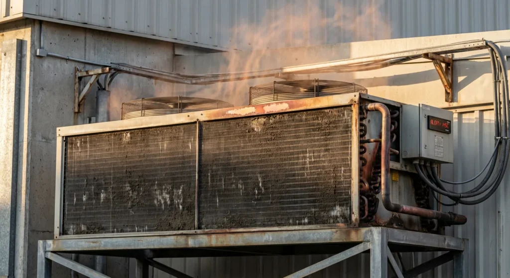 Перегрев — следствие одновременно нескольких факторов. Высокая температура наружного воздуха снижает способность систем отводить тепло, а загрязнение конденсаторов, износ вентиляторов и неправильные настройки автоматики ещё больше ухудшают ситуацию. В результате оборудование работает на пределе возможностей, потребляет больше энергии и быстрее выходит из строя.